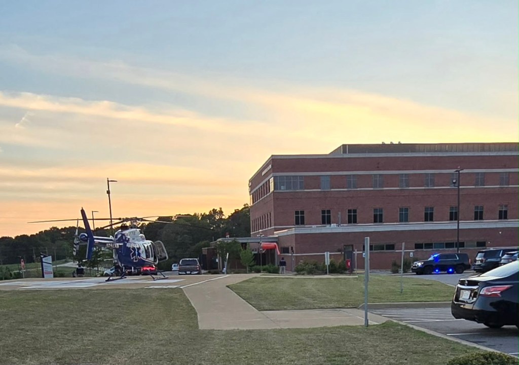 UPDATE 3: This is the scene outside of the Freestanding Emergency Department off of Shug Jordan Parkway after a deputy was shot in Loachapoka. Lifesaver 3 has landed at the scene. I am told the deputy was shot in the arm and taken to this hospital.